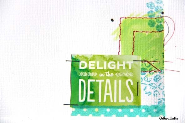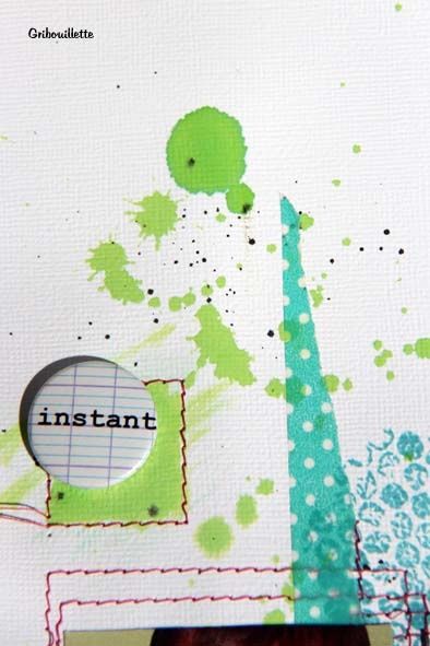 et Hop ! une page avec couture, peinture acrylique et encre de Chine.